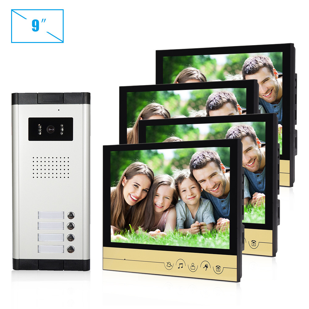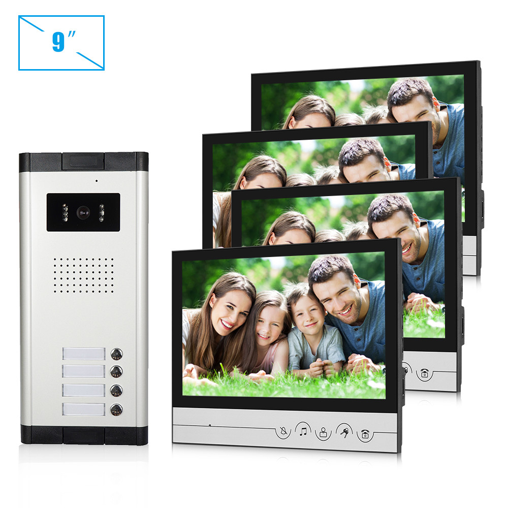 sistema de intercomunicación video del timbre del apartamento 4Wire para 4 apartamentos con el sistema de la entrada de puerta del monitor de 7 pulgadas