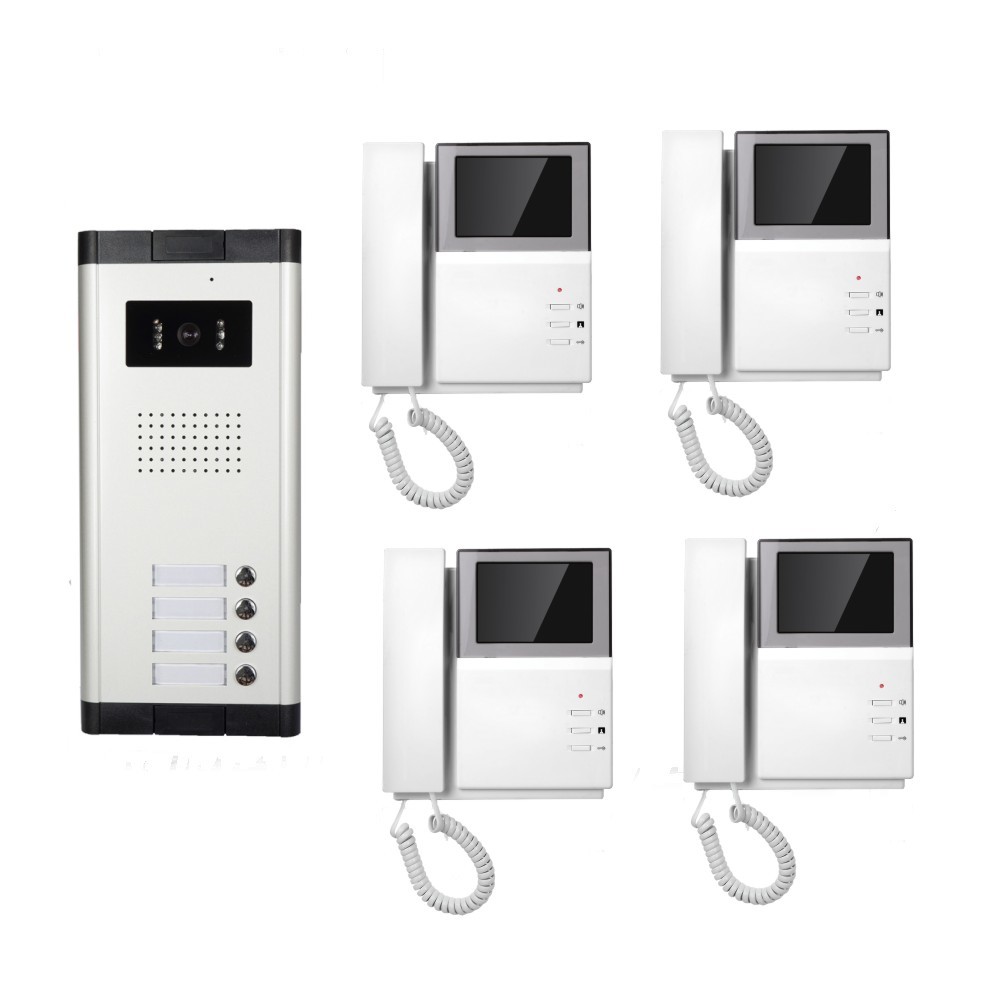 El sistema multi del apartamento del apartamento de 4 familias del botón directo video multi del timbre fijó a mano la pantalla de 4,3 pulgadas